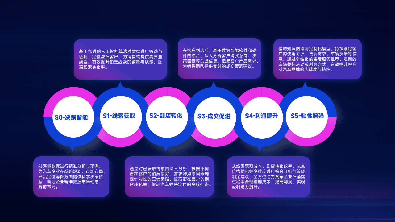通过拓宽潜在客户来源、、、优化线索分配并提高到店转化率,,以增强销售效率。。同时,,利用线索数据不断优化分析模型,,有效提升转化率,,,,扩大营销影响力。。。